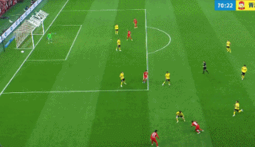 关键是安佩姆传球这一下的变化很多,第一球是左脚传的,后面第二球是右脚外脚背传的。不变的是在门前的武磊,他总能把握住机会。
