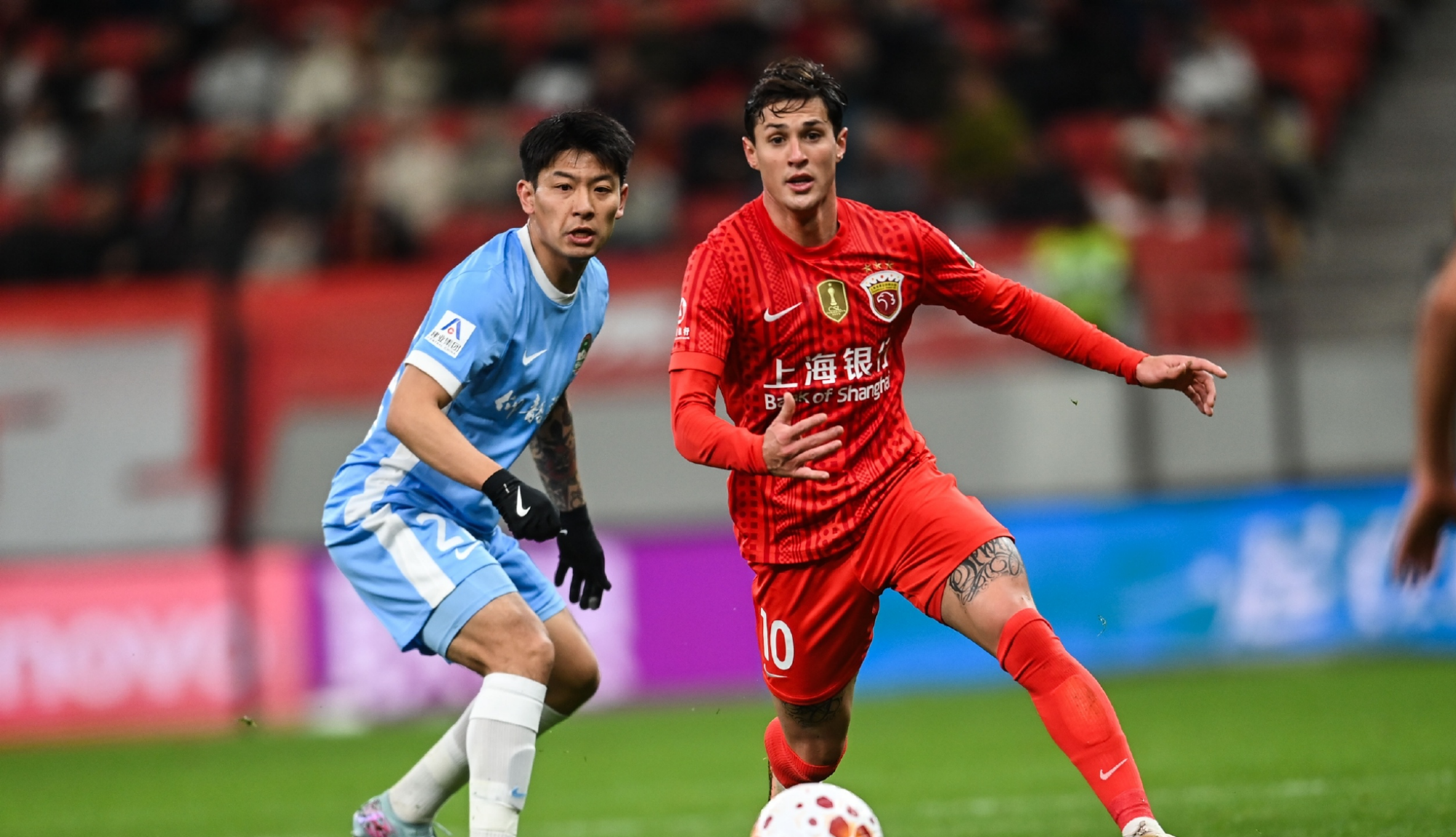 虽然在武磊出场之前,上海海港已经取得2比0领先,不过球队依旧踢得有点紧,甚至很多球员处于一种非常压抑的状态。